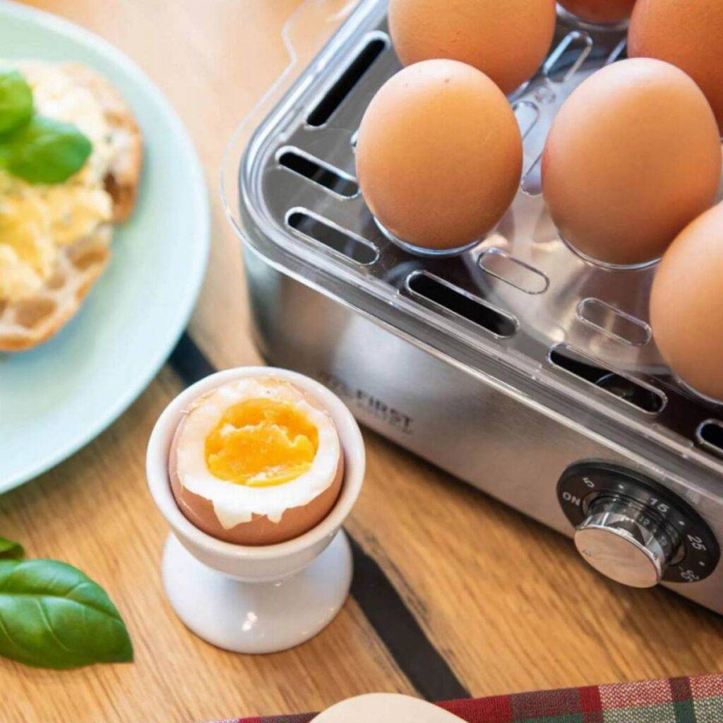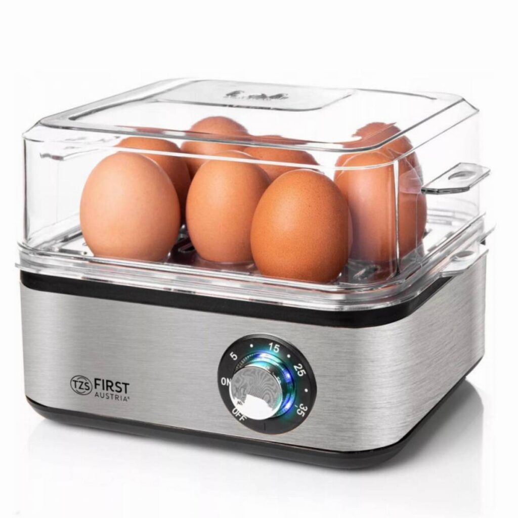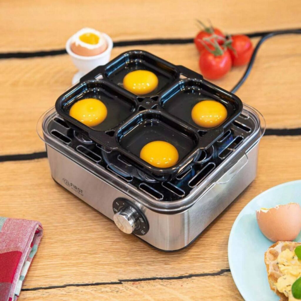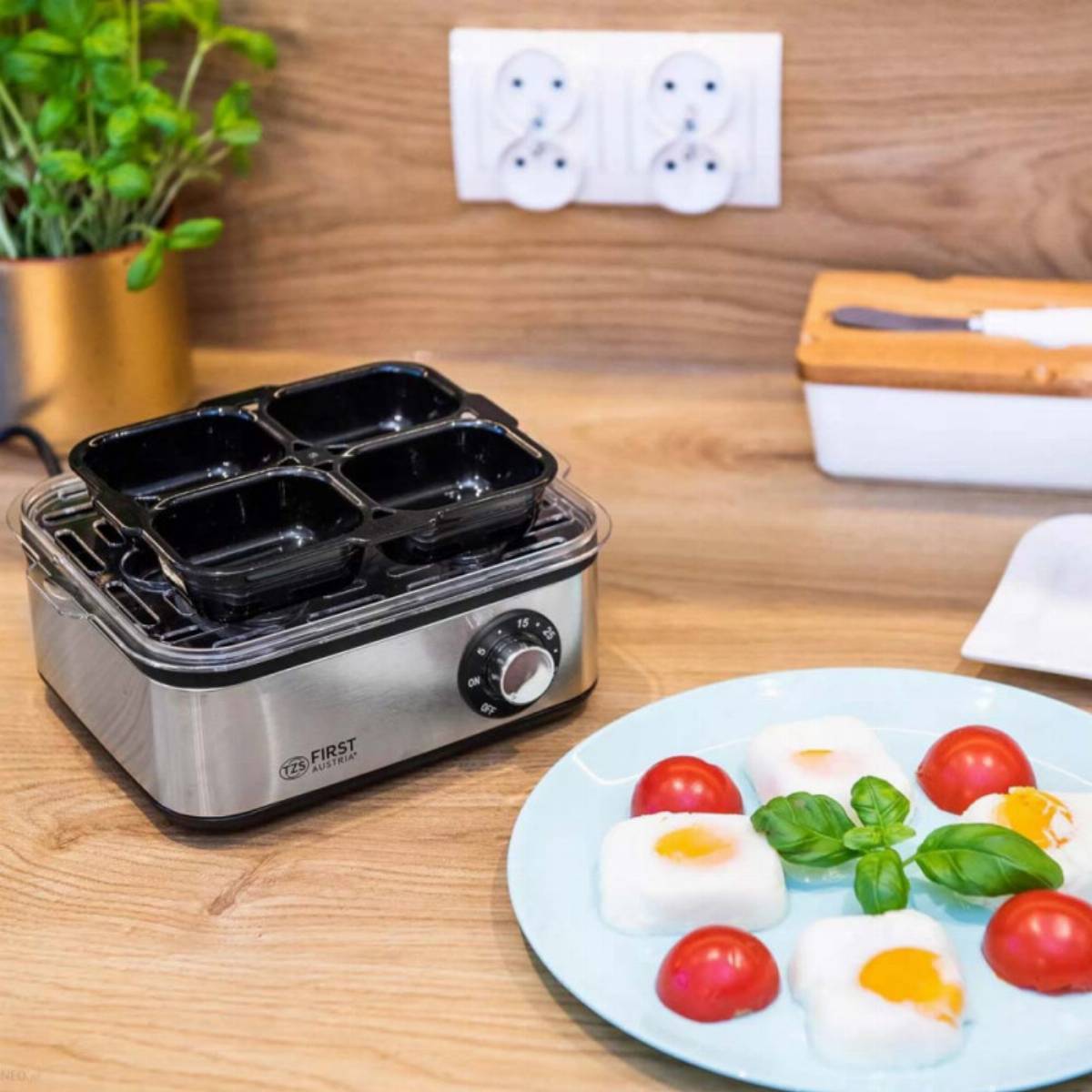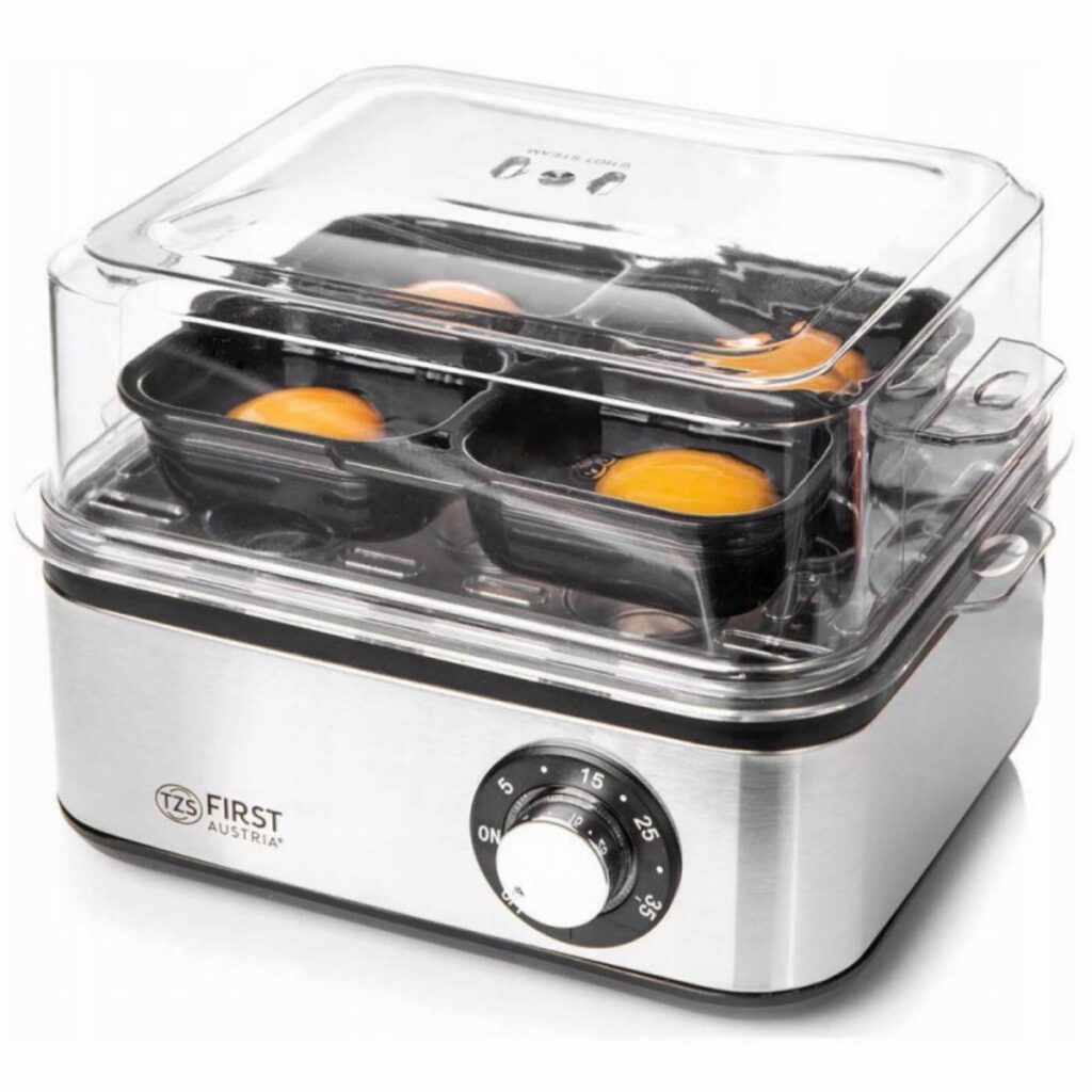 Βραστήρας αυγών First Austria FA-5115-3, 8 αυγά, Χρονοδιακόπτης και κουδούνι, Εξάρτημα για τηγανητά αυγά, Inox